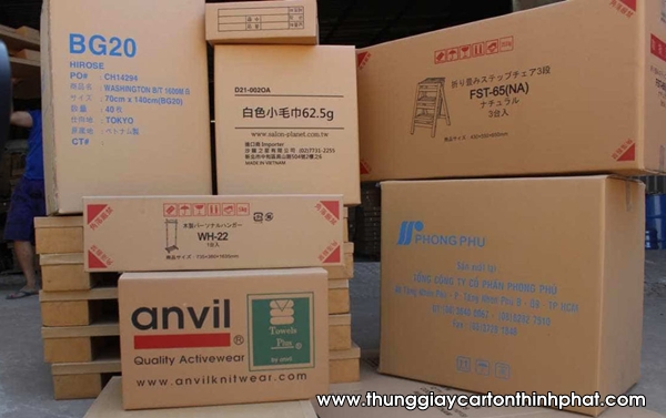 - In thùng carton: Những chi tiết in ấn bên ngoài thùng giúp người vận chuyển và người sử dụng dễ dàng phân loại hàng hoá, lưu giữ cũng như sử dụng. Ngoài ra những thông tin về sản phẩm, logo, nhà sản xuất… sẽ là một công cụ quảng bá hiệu quả hình ảnh doanh nghiệp đi xa hơn.